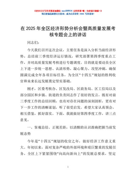 / 在2025年全区经济形势分析会暨高质量发展考核专题会上的讲话
