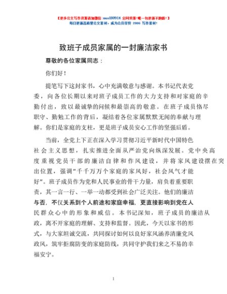 / 致班子成员家属的一封廉洁家书