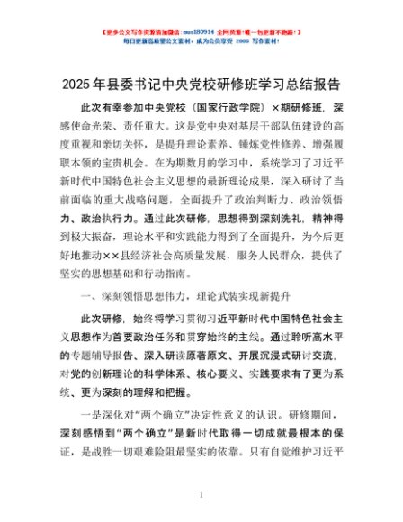 / 2025年县委书记中央党校研修班学习总结报告