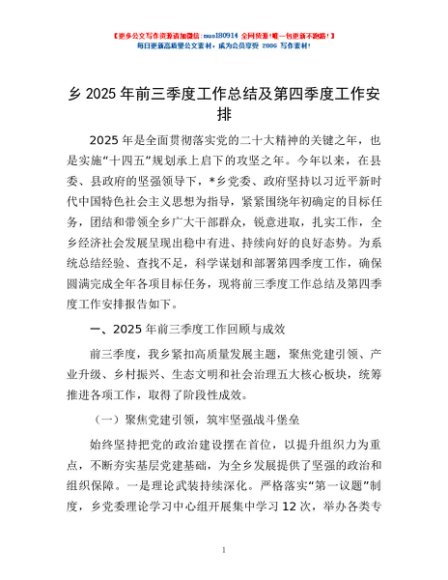 / 乡2025年前三季度工作总结及第四季度工作安排