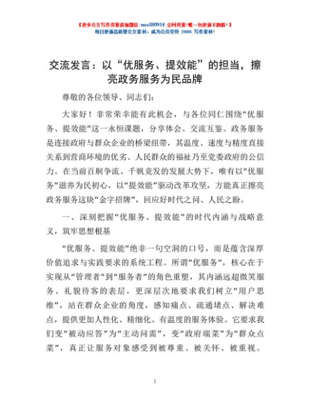 交流发言:以“优服务、提效能”的担当,擦亮政务服务为民品牌