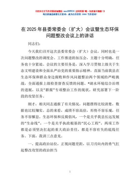 / 在2025年县委常委会(扩大)会议暨生态环保问题整改会议上的讲话