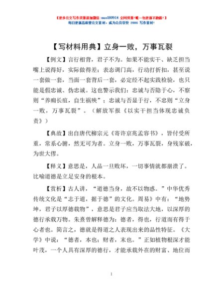 / 【写材料用典】立身一败,万事瓦裂