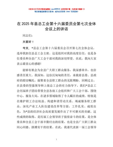 / 在2025年县总工会第十六届委员会第七次全体会议上的讲话