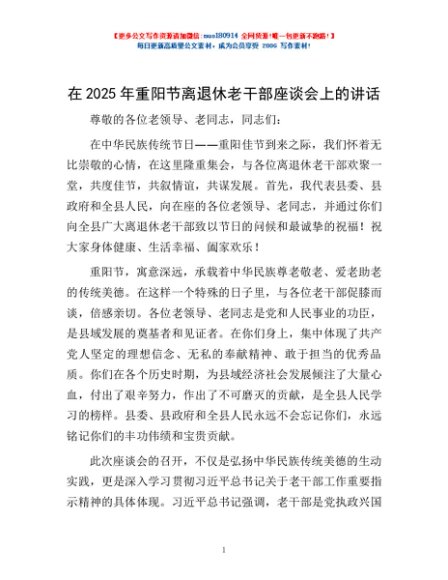 / 在2025年重阳节离退休老干部座谈会上的讲话
