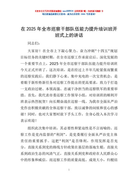 / 在2025年全市巡察干部队伍能力提升培训班开班式上的讲话