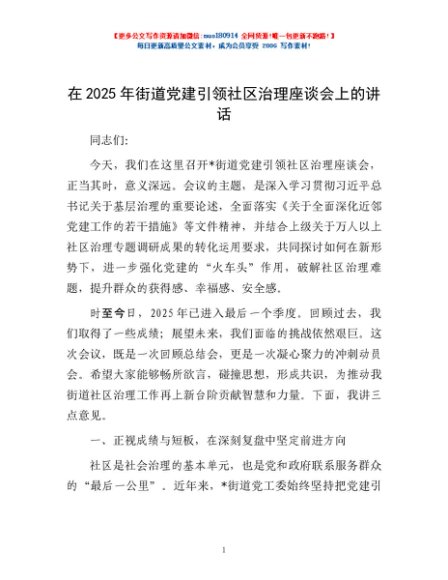 / 在2025年街道党建引领社区治理座谈会上的讲话