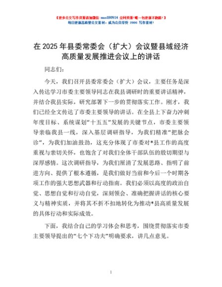 / 在2025年县委常委会(扩大)会议暨县域经济高质量发展推进会议上的讲话