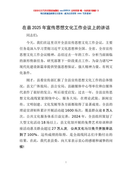 / 在县2025年宣传思想文化工作会议上的讲话
