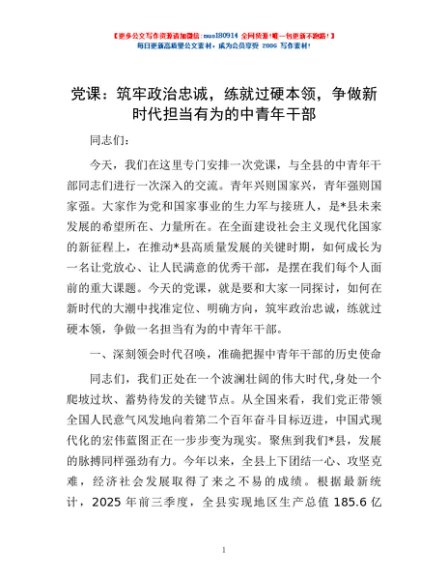 / 党课:筑牢政治忠诚,练就过硬本领,争做新时代担当有为的中青年干部