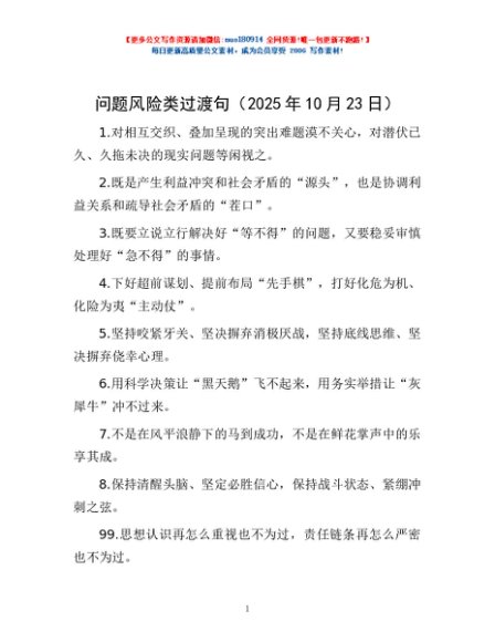 问题风险类过渡句(2025年10月23日)