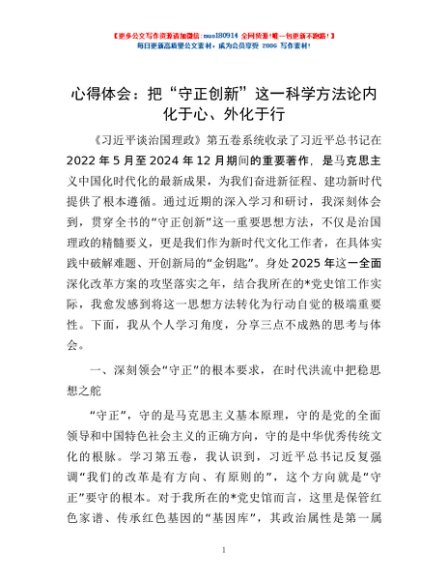 心得体会:把“守正创新”这一科学方法论内化于心、外化于行