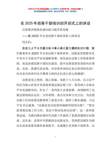 / 在2025年巡察干部培训班开班式上的讲话