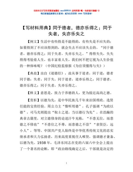 / 【写材料用典】同于德者,德亦乐得之; 同于失者,失亦乐失之