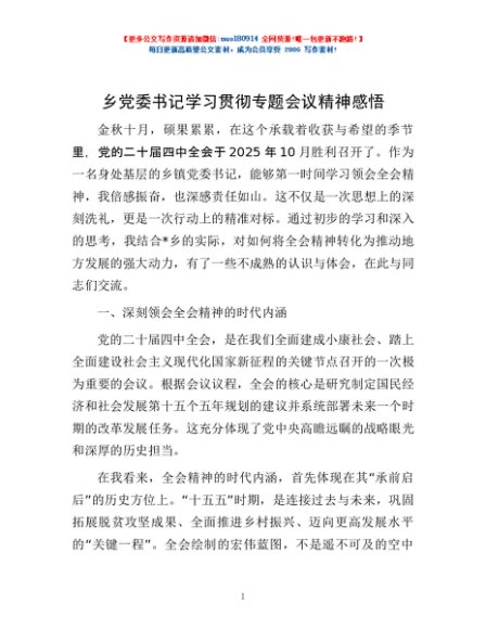 / 乡党委书记学习贯彻专题会议精神感悟