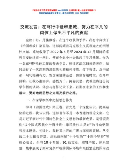 交流发言:在笃行中诠释忠诚,努力在平凡的岗位上做出不平凡的贡献
