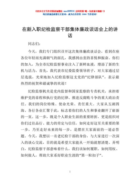 / 在新入职纪检监察干部集体廉政谈话会上的讲话