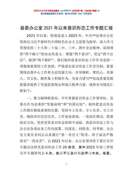 / 县委办公室2021年以来意识形态工作专题汇报