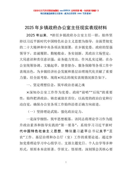 / 2025年乡镇政府办公室主任现实表现材料