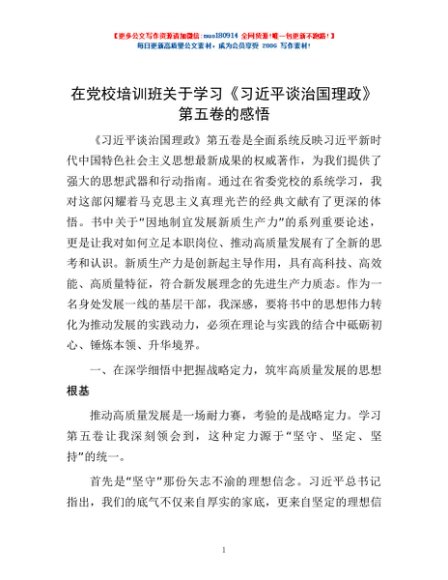 / 在党校培训班关于学习《习近平谈治国理政》第五卷的感悟