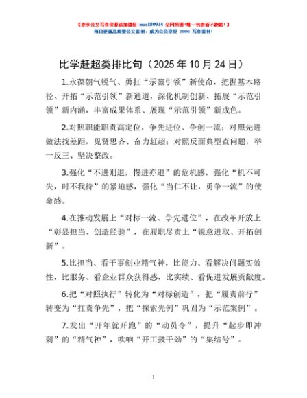 / 比学赶超类排比句(2025年10月24日)