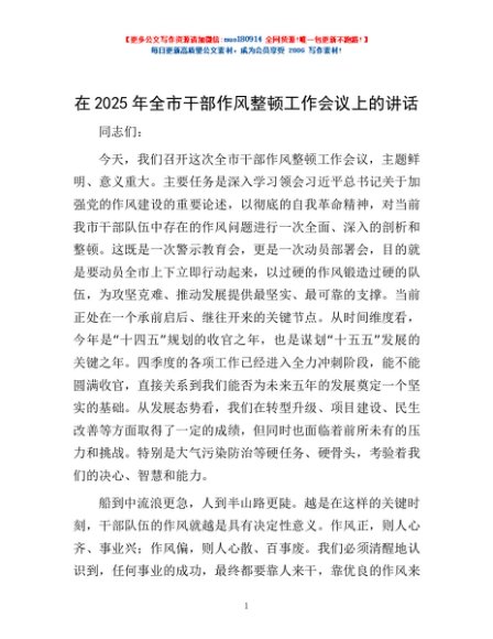 / 在2025年全市干部作风整顿工作会议上的讲话