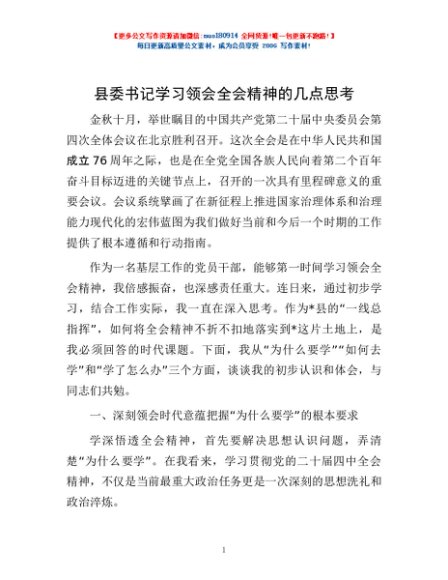 / 县委书记学习领会全会精神的几点思考