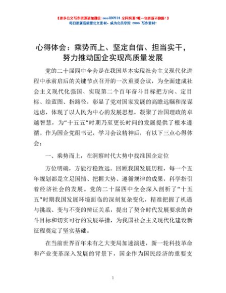 / 心得体会:乘势而上、坚定自信、担当实干,努力推动国企实现高质量发展