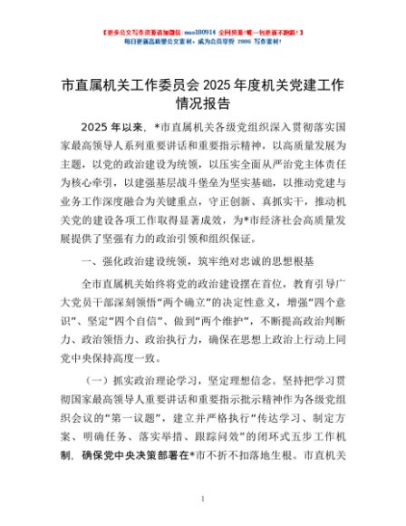 / 市直属机关工作委员会2025年度机关党建工作情况报告