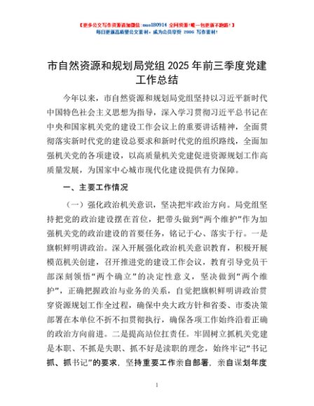 / 市自然资源和规划局党组2025年前三季度党建工作总结