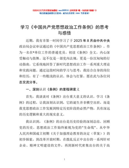/ 学习《中国共产党思想政治工作条例》的思考与感悟
