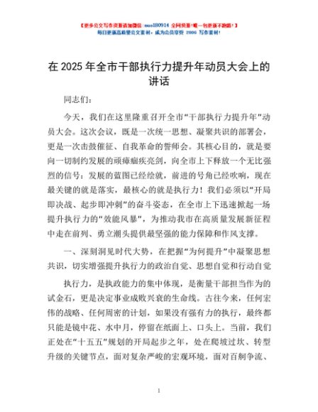 / 在2025年全市干部执行力提升年动员大会上的讲话