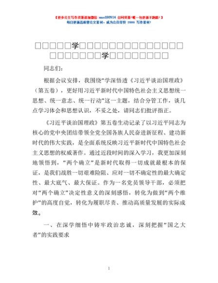 / 在县委理论学习中心组《习近平谈治国理政》(第五卷)专题学习会上的研讨发言