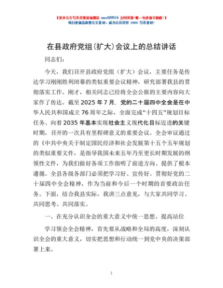 / 在县政府党组(扩大)会议上的总结讲话