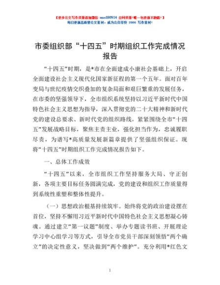 / 市委组织部“十四五”时期组织工作完成情况报告