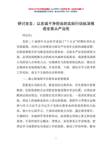 / 研讨发言:以忠诚干净担当的实际行动纵深推进全面从严治党