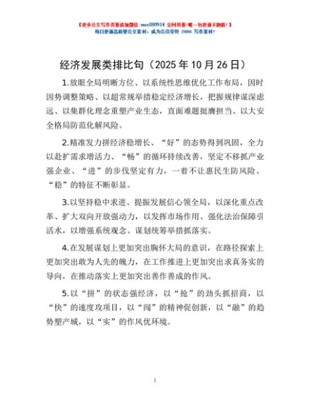 / 经济发展类排比句(2025年10月26日)