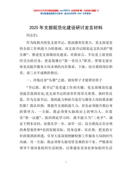 / 2025年支部规范化建设研讨发言材料