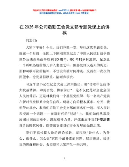 / 在2025年公司后勤工会党支部专题党课上的讲稿