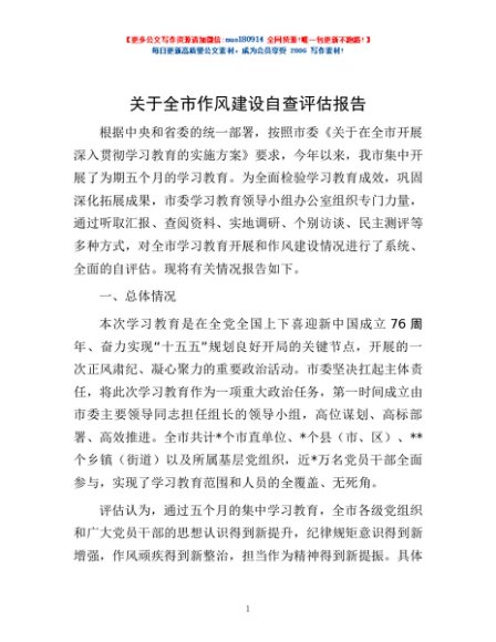 / 关于全市作风建设自查评估报告