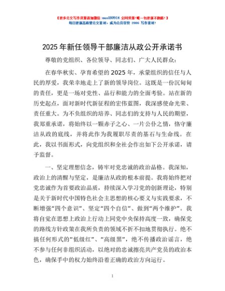 / 2025年新任领导干部廉洁从政公开承诺书