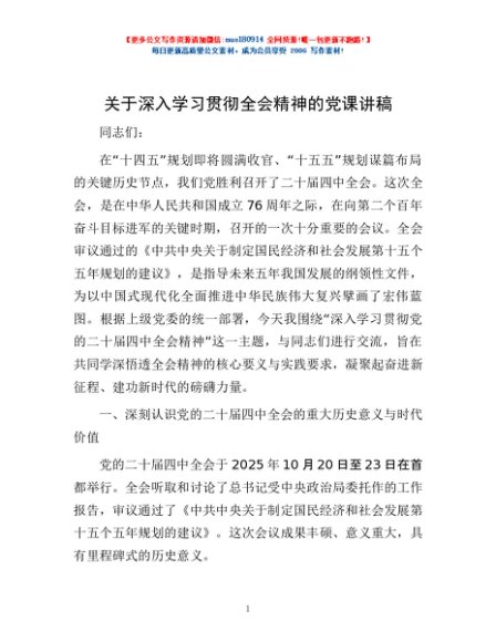 / 关于深入学习贯彻全会精神的党课讲稿