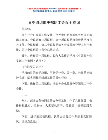 / 县委组织部干部职工会议主持词