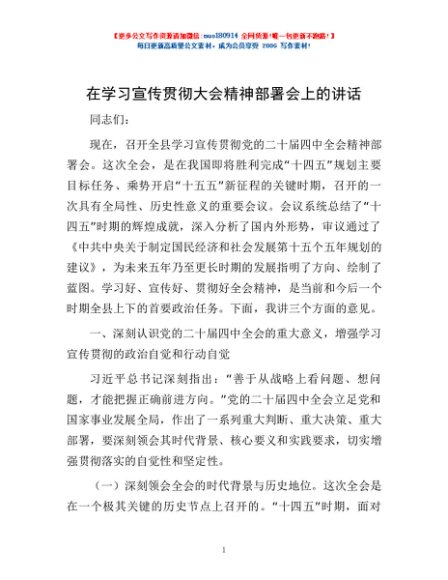 / 在学习宣传贯彻大会精神部署会上的讲话