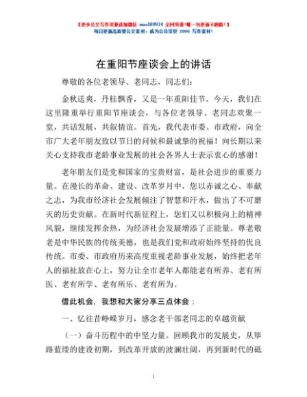 / 在重阳节座谈会上的讲话