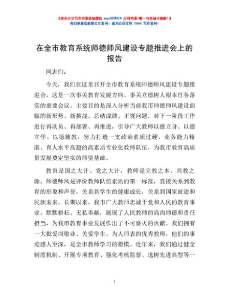 / 在全市教育系统师德师风建设专题推进会上的报告