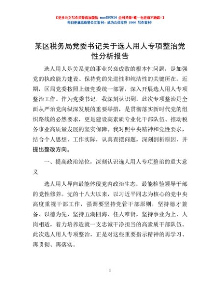/ 某区税务局党委书记关于选人用人专项整治党性分析报告