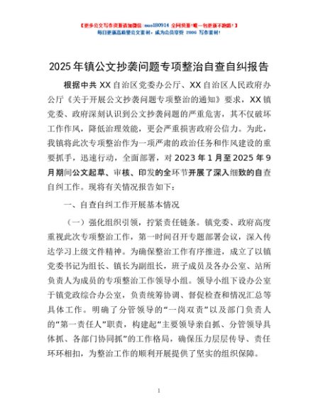 / 2025年镇公文抄袭问题专项整治自查自纠报告