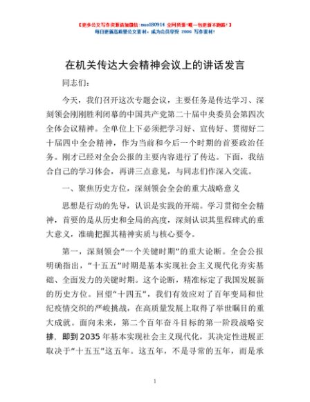 / 在机关传达大会精神会议上的讲话发言