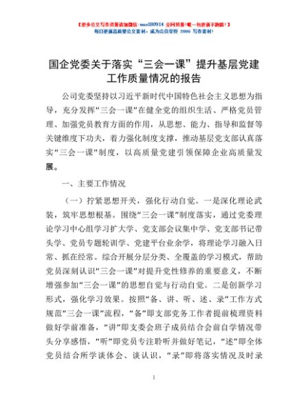 / 国企党委关于落实“三会一课”提升基层党建工作质量情况的报告